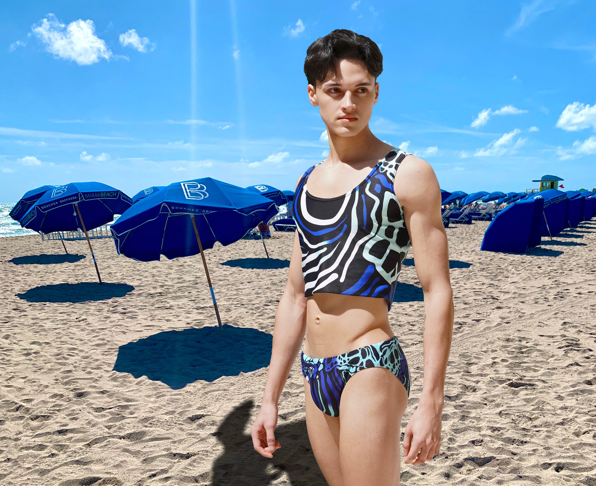 Elevate your beach style with our stunning Angelfish men's crop tank top, designed to perfectly complement Maris Equi swimshorts and swim briefs. Crafted for comfort and style, this coordinated ensemble is your go-to choice for beachside adventures or poolside lounging.