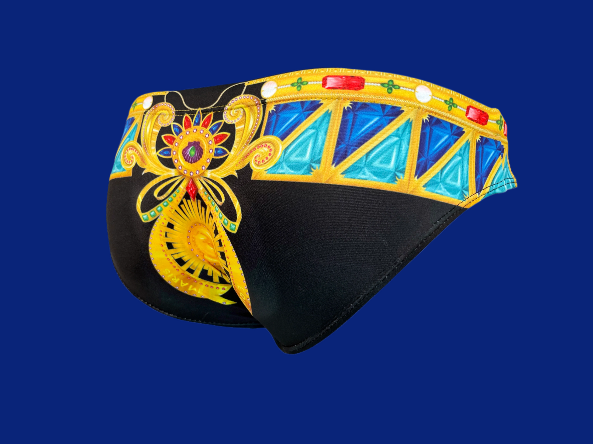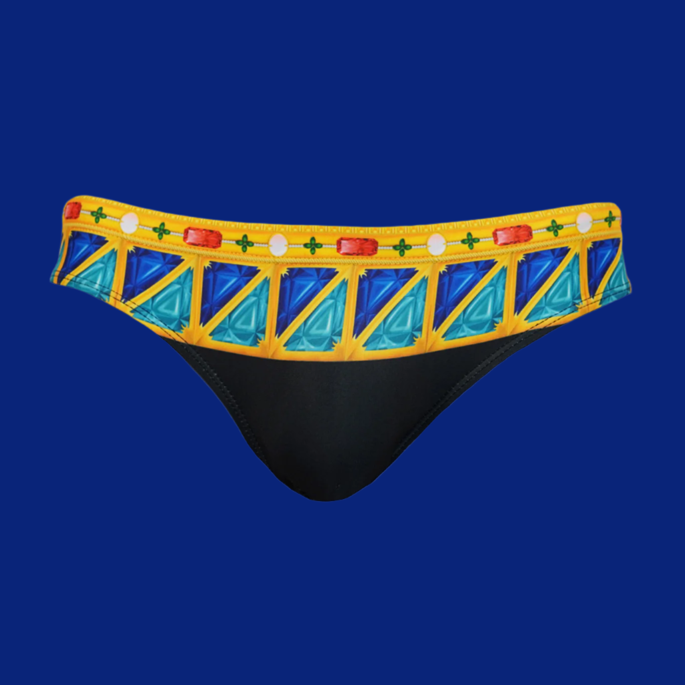 Indulge in opulence with our Bejeweled men's swim brief. This bikini brief draws inspiration from the extravagant adornments of ancient royalty. Immerse yourself in luxurious comfort while exuding regal elegance. Elevate your beach swimwear ensemble with a Bejeweled swimsuit, a statement of sophisticated refined style.