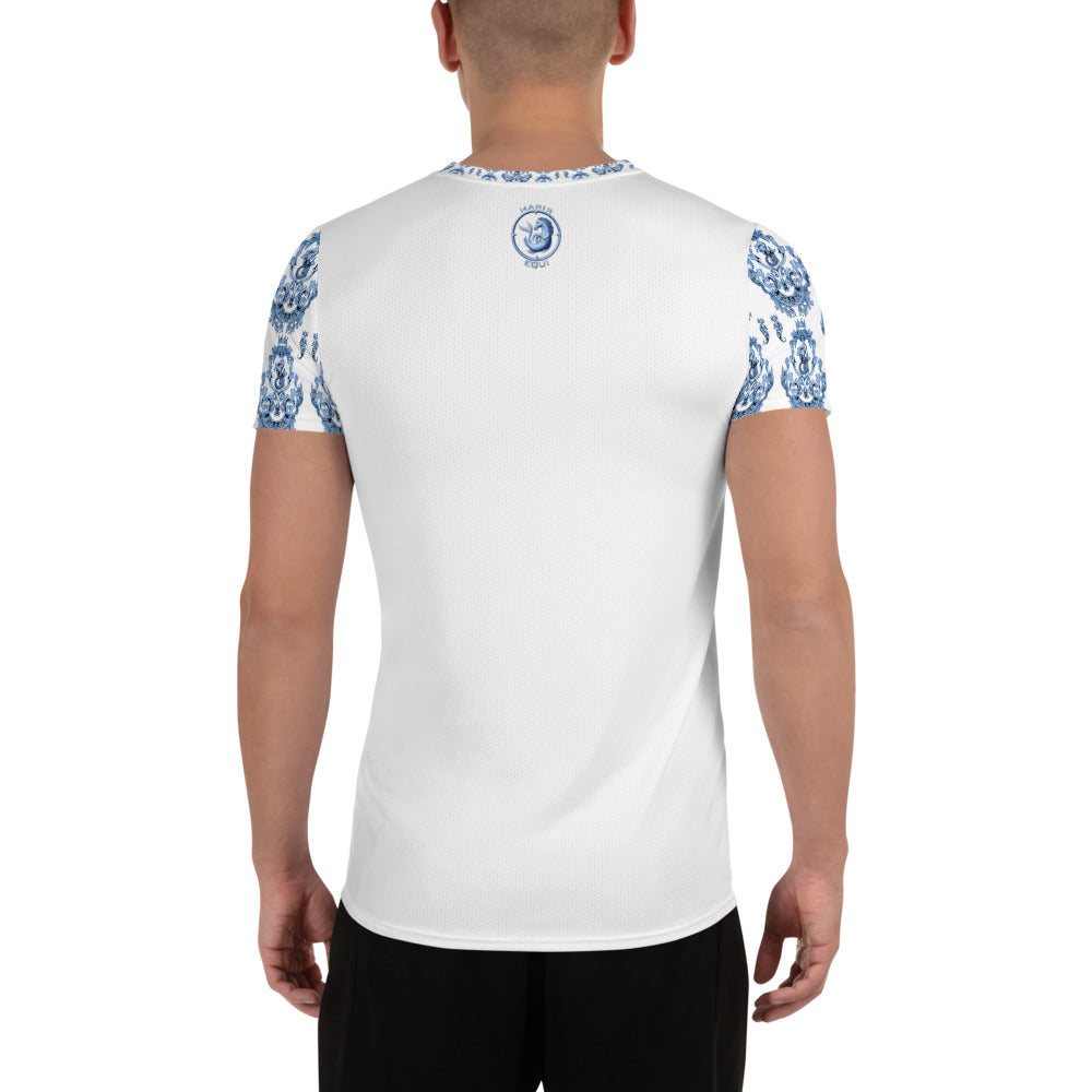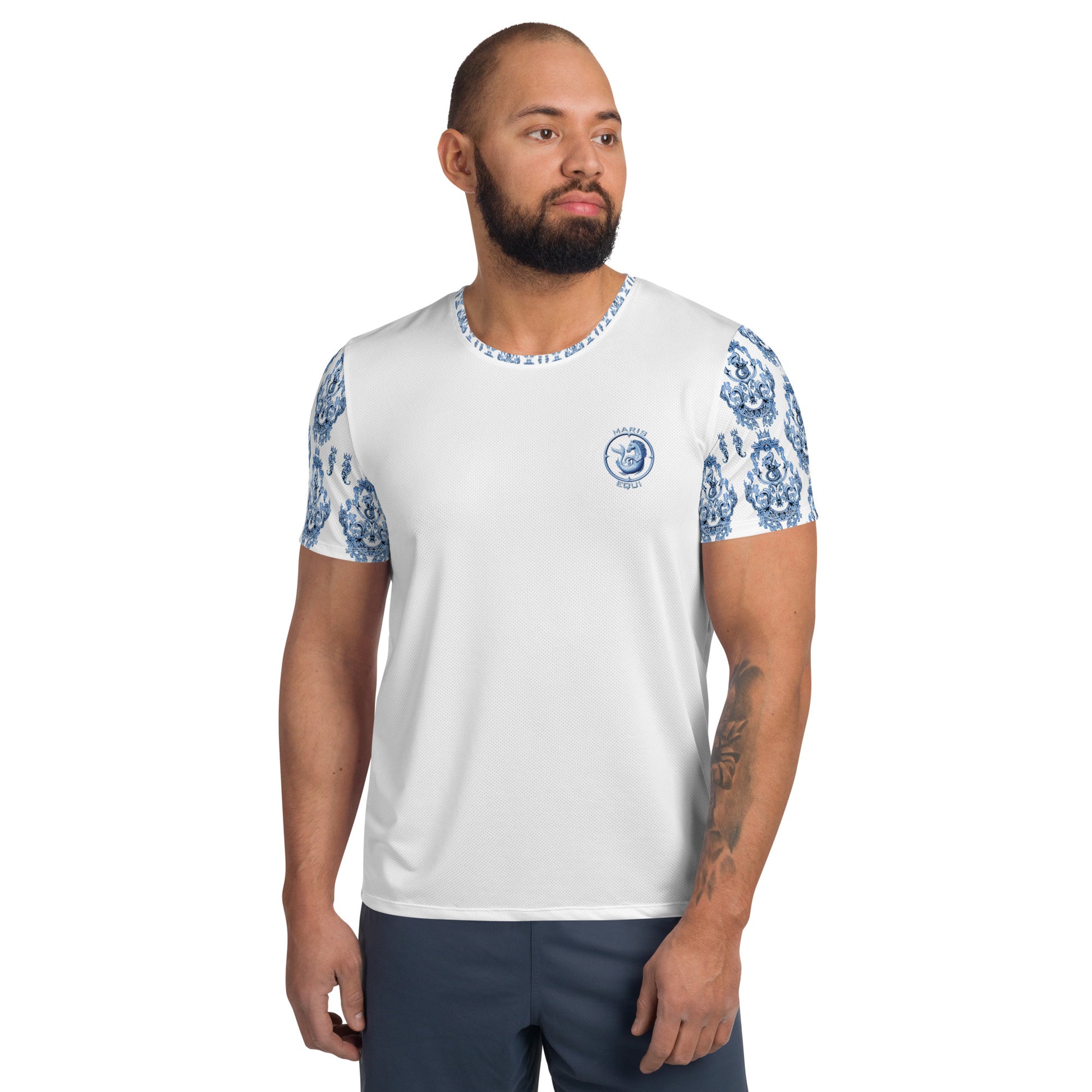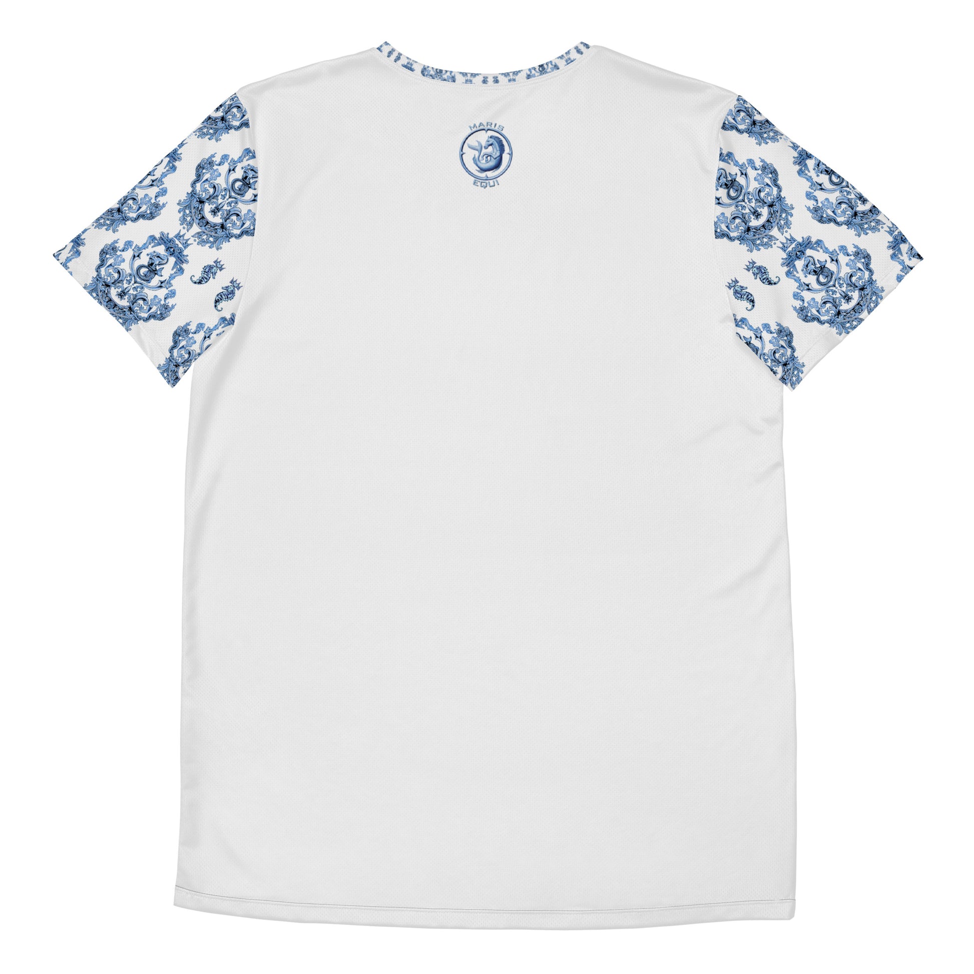 The Blue Baroque Men's sport shirt is the ideal complement to our Blue Baroque swim briefs or swim shorts. Crafted with comfortable moisture-wicking mesh fabric, this shirt is perfect for both leisurely beach days and active pursuits. Put together your perfect matching beach outfit with Maris Equi!