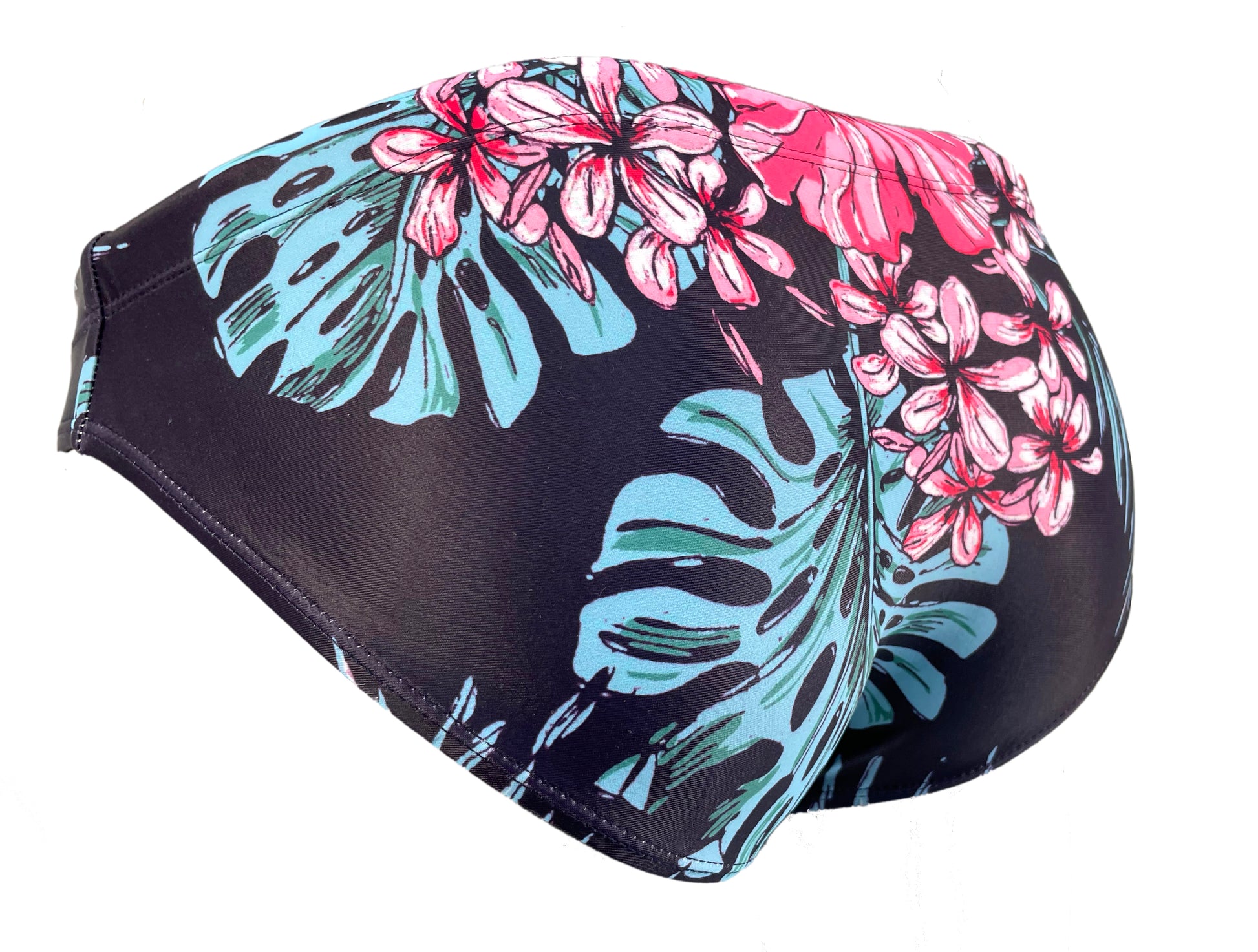 Who says men can't rock a floral? Our Floral men's swim brief echoes dreams of Hawaii in vibrant colors of pink and teal. Inspired by Hawaiian prints, this swimwear exudes laid-back charm. This swimsuit is also our most popular bikini brief!