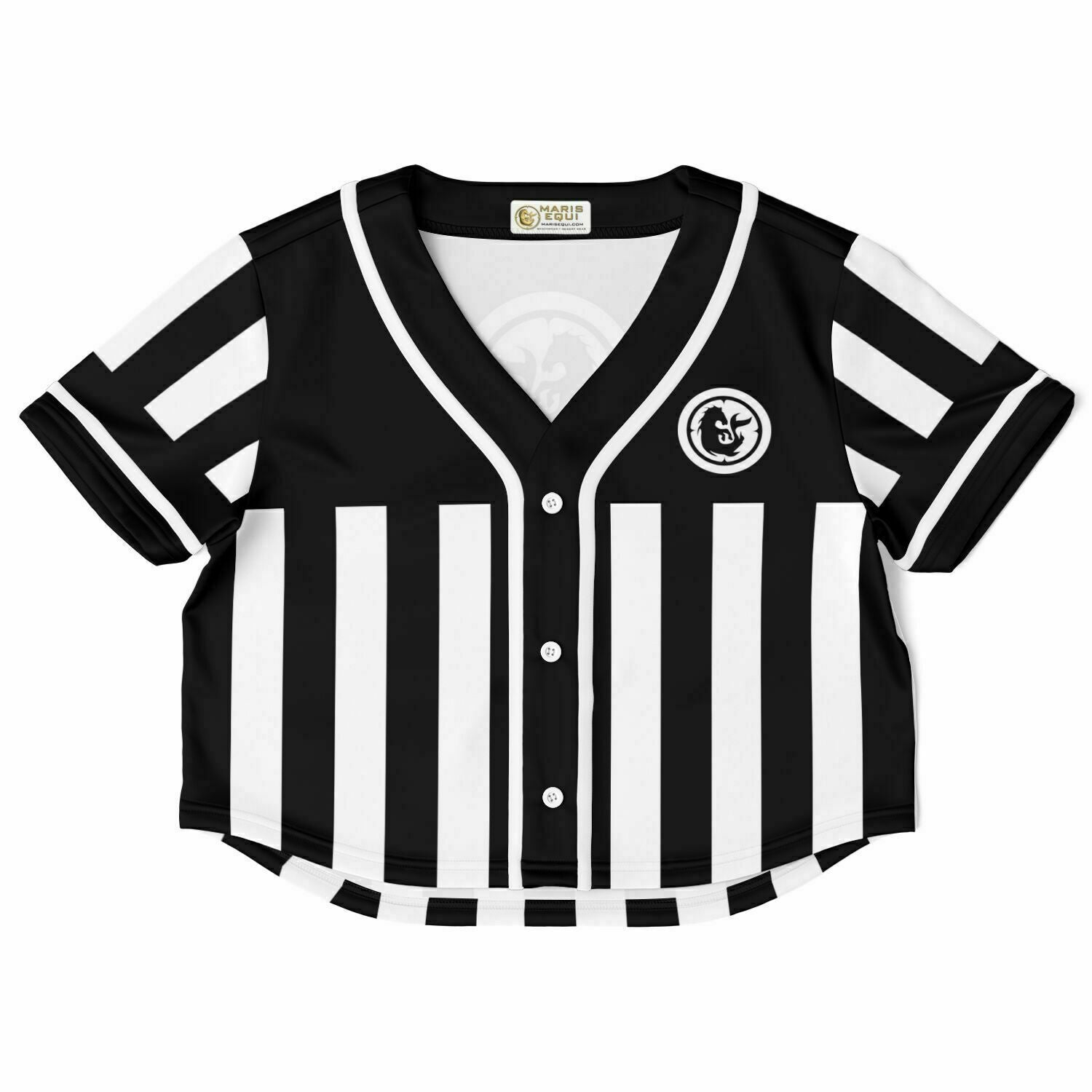 Show up in style with this cropped baseball jersey. This top is a must-have for any modern fashionista. The chic design is casual yet trendy, making it a perfect addition to your wardrobe essentials.