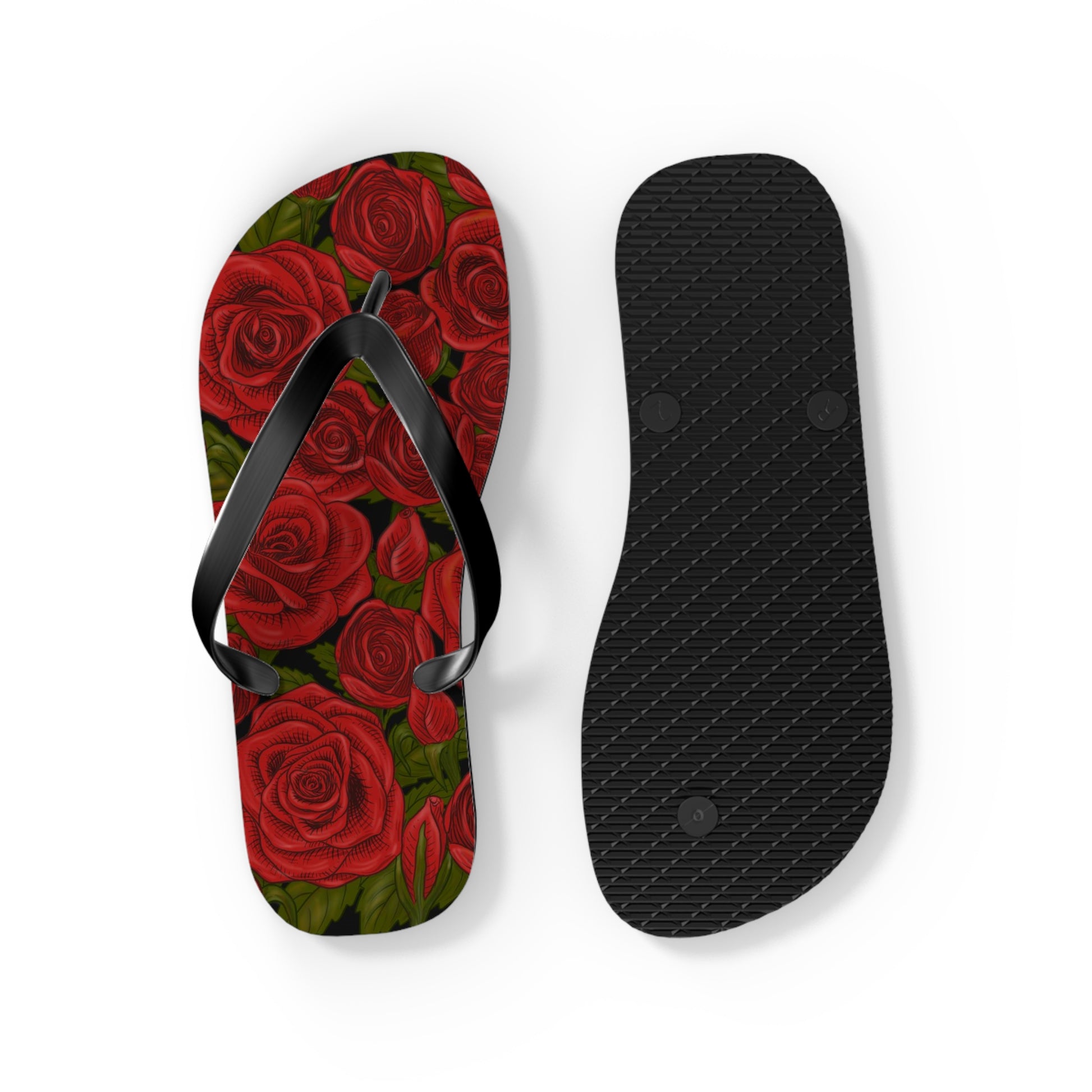 These flip-flops are the perfect coordinate for our Rozen Red Rose men's swimwear and tops!