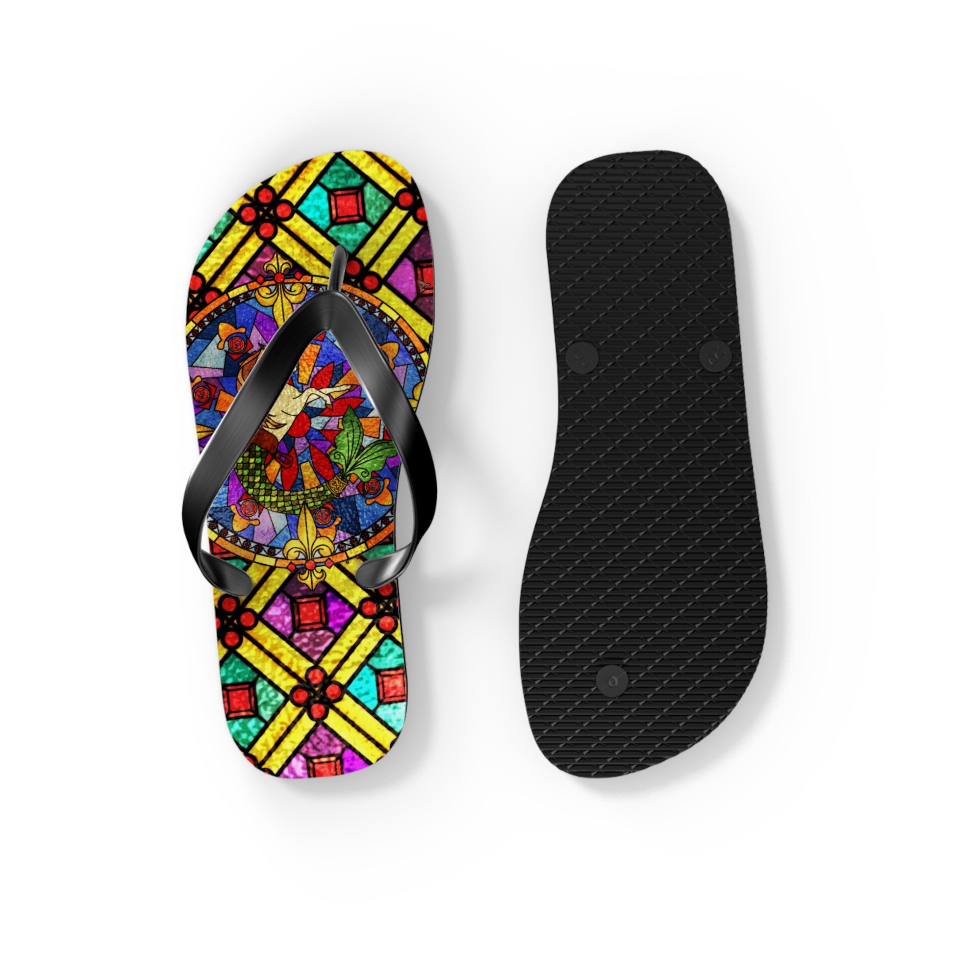 These flip-flops are the perfect coordinate for our Stained Glass men's swimwear and tops!