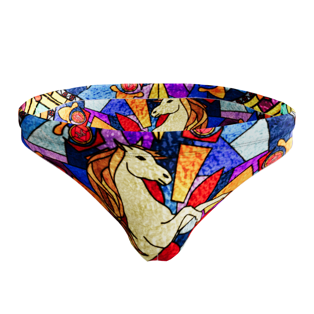 Is it Sunday? It doesn't matter, wearing the Stained Glass Men's Swim Brief will make you feel divine. Inspired by the ornate stained glass of Byzantine Era churches, this bikini brief will take you to Heaven. This swimsuit is made with luxurious environmentally responsible Repreve and shown at New York Fashion Week.
